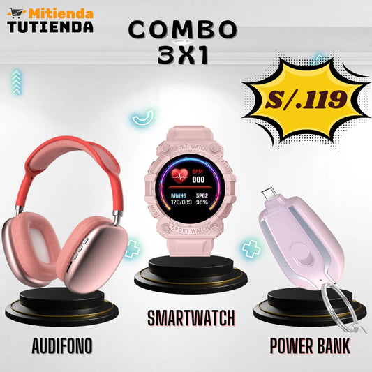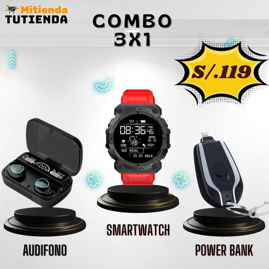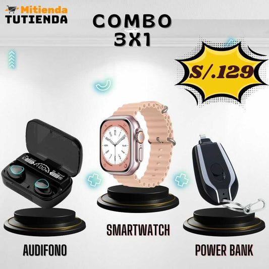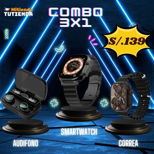 Combo 3 en 1 (Smartwatch + 2 Correas + Audífono inalámbrico)